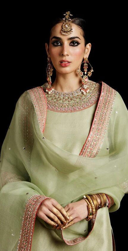 Our festive shararas are perfect for Eid, mehndi nights, or family gatherings. Lighter in design yet full of elegance, these options offer a chic alternative to heavier wedding wear.