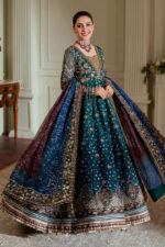 This stunning set features embroidered digital printed chiffon for the front and back body, as well as the sleeves. It is complemented by velvet front and back borders (Design 1 & 2) and embroidered organza front and back borders. The sleeves are detailed with velvet embroidery (Design 1 & 2), adding elegance to the look.