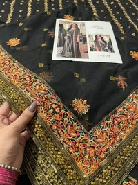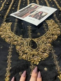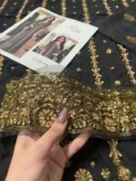 This timeless formal ensemble features a richly embroidered black base highlighted with intricate floral patterns and refined detailing. Paired with a matching embroidered dupatta, it offers a perfect blend of elegance, luxury, and contemporary sophistication—ideal for weddings and festive occasions.